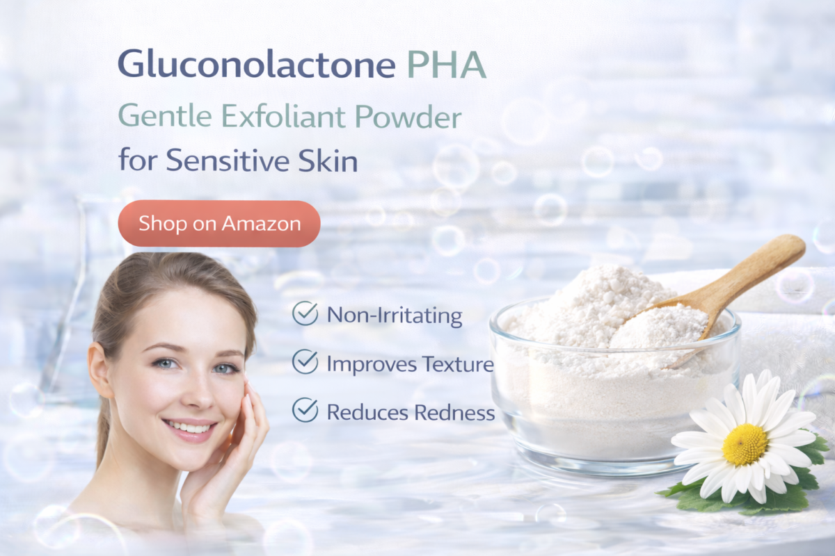 In skincare, Gluconolactone serves as a gentle exfoliant that removes dead skin cells, smooths texture, and brightens the complexion without irritation. It also acts as a powerful antioxidant, protecting the skin from environmental stressors and free radicals that cause premature aging. Additionally, Gluconolactone is a natural hydration booster, helping the skin retain moisture and strengthen its barrier, reducing dryness and sensitivity over time. Its soothing, multi-benefit profile makes it ideal for sensitive, acne-prone, and mature skin, commonly found in cleansers, toners, serums, and moisturizers.